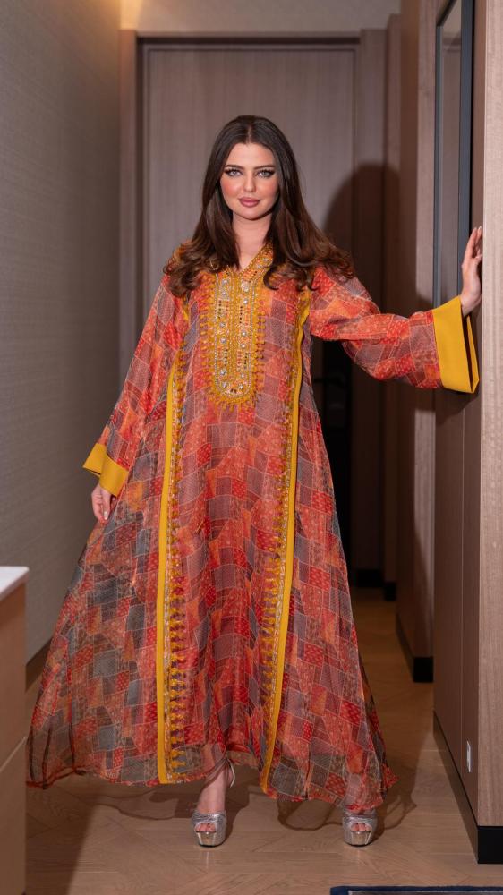 جلابية راقية صصمناها بقصة ساترة باكمام طويلة وبألوان نارية 🔥