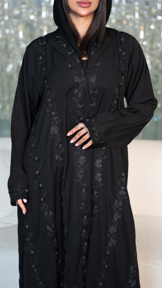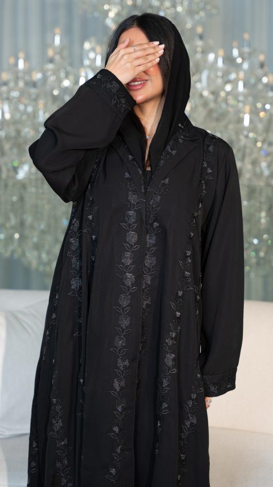عباية بقصة بليزر بتطرز ورد بشكل طولي