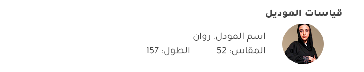 العباية نسجت من خامة ميني ميت من افضل الخامات العملية بقصة كلوش، تم تصميمها مفتوحة وتغلق بطقطق لسهولة اللبس.