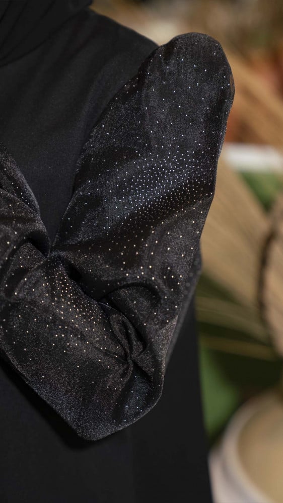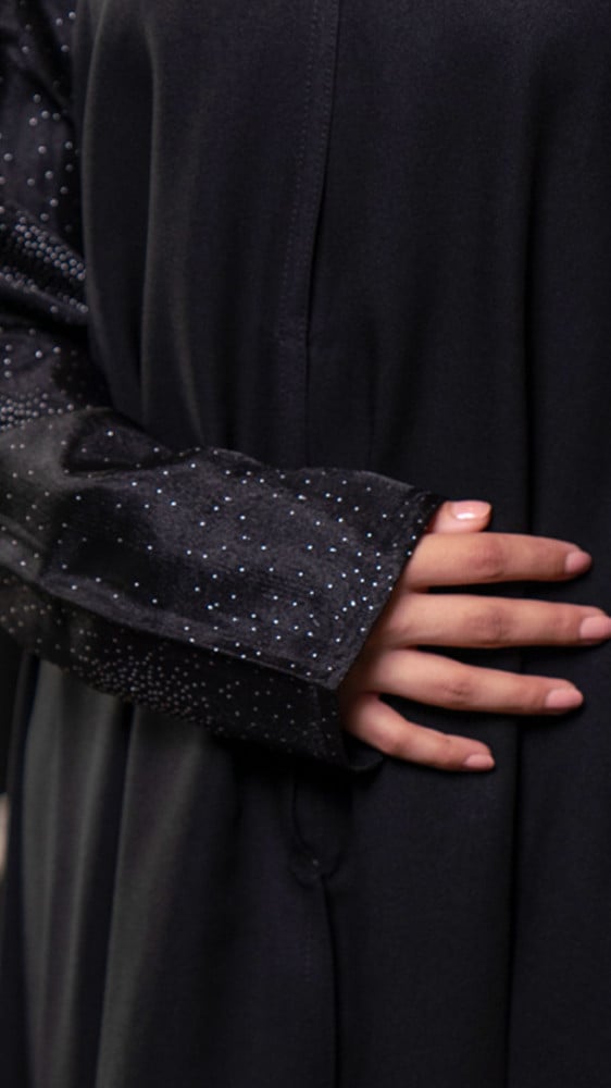- الموديل: عباية سوداء بقصة اكمام فخمة