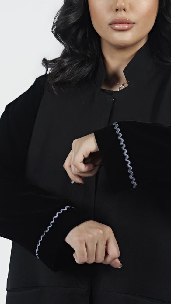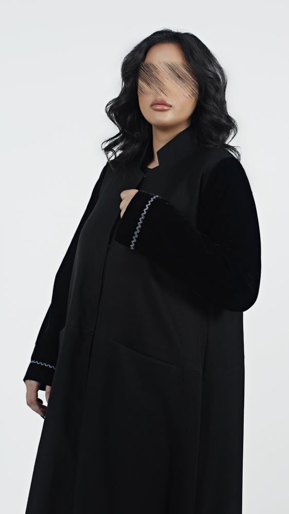 أخترنا خامة ميني ميت للعباية والاكمام مخمل واضفنا جيوب مخفية