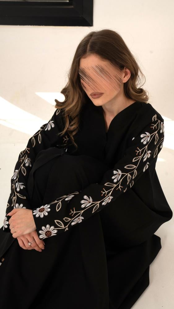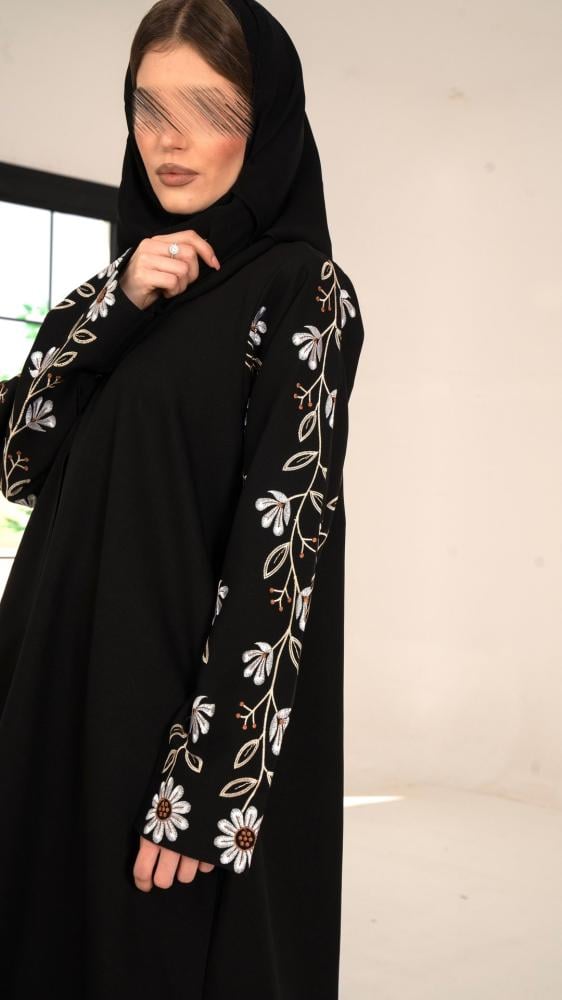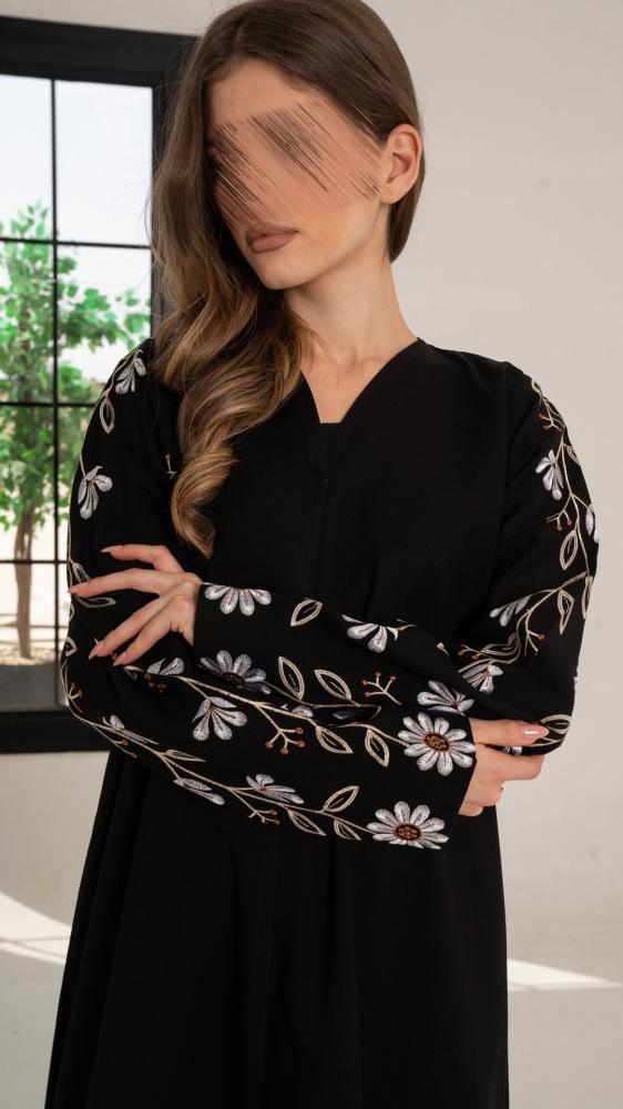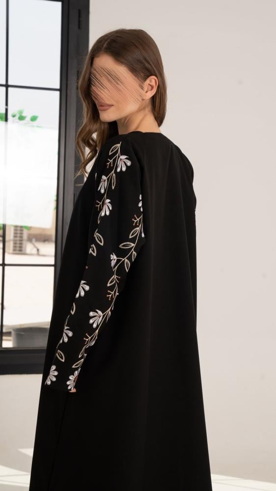 - الموديل: عبايه سوداء مطرزة بقصة كلوش