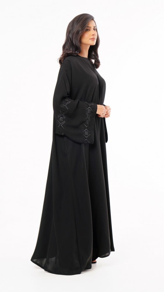 - الموديل: عباية بتطريز عريض على الاكمام ذات تصميم راقي وجميل