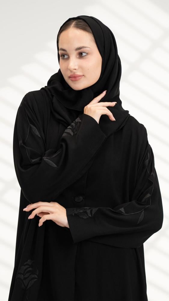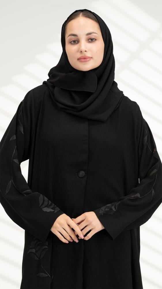 عباية أنيقة بتطريز أسود خامة عملية للبس اليومي