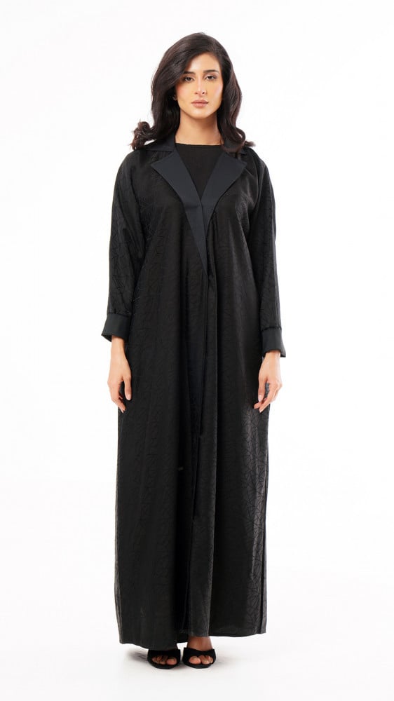 اختاري العباية اللي تشبهك "كلاسيكية" وفخمة تناسب الدوام والزيارات الهامه، نسجت من خامة جاكار برسوم وصممت بياقة رسميه ساده وخامة العباية برسوم معينات والاكمام ساده من المعصم من نفس خامة الياقة، مفتوحة وتغلق بطقطق بالكامل.