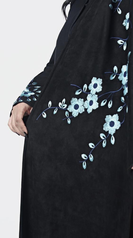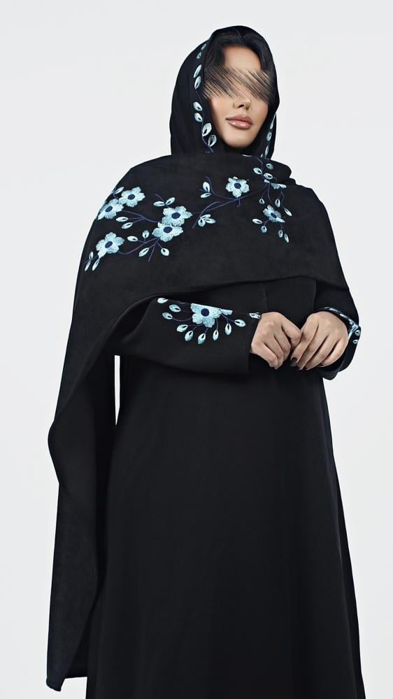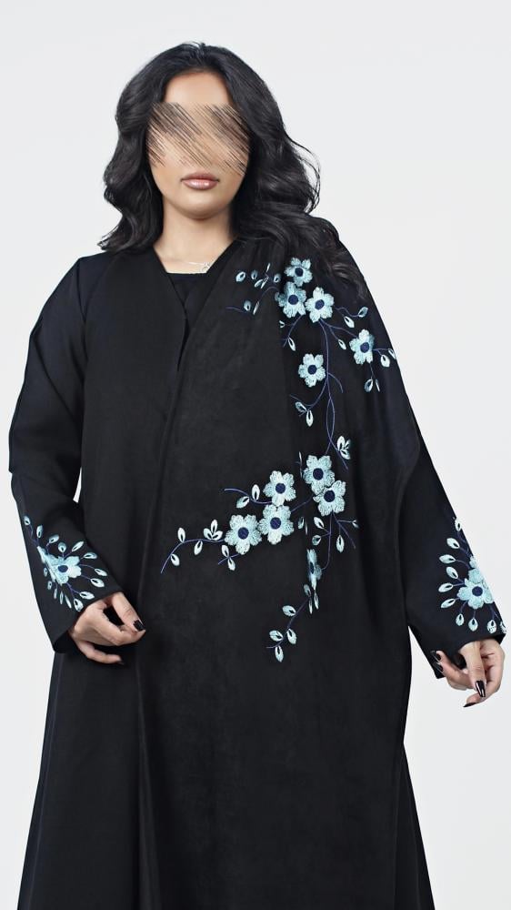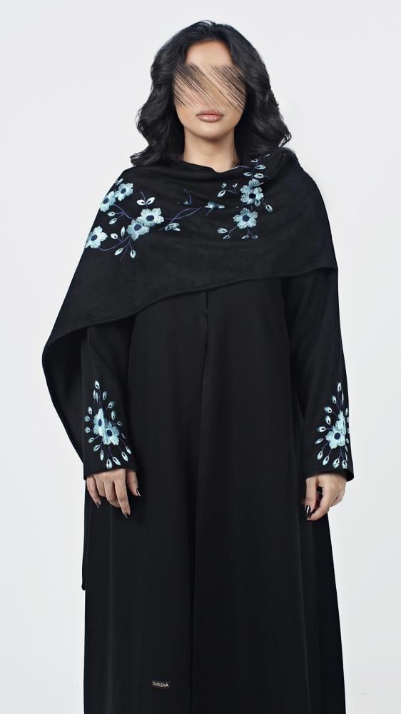 أخترنا خامة ميني ميت للعباية والشال شامواه مطرز بورد سماوي فاتح