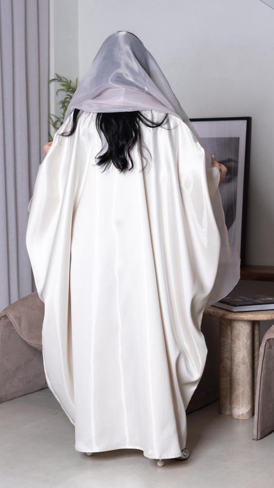 قصة بشت راقية والخامة اخترناها تفته ميكادو بلون سكري مع الطرحة