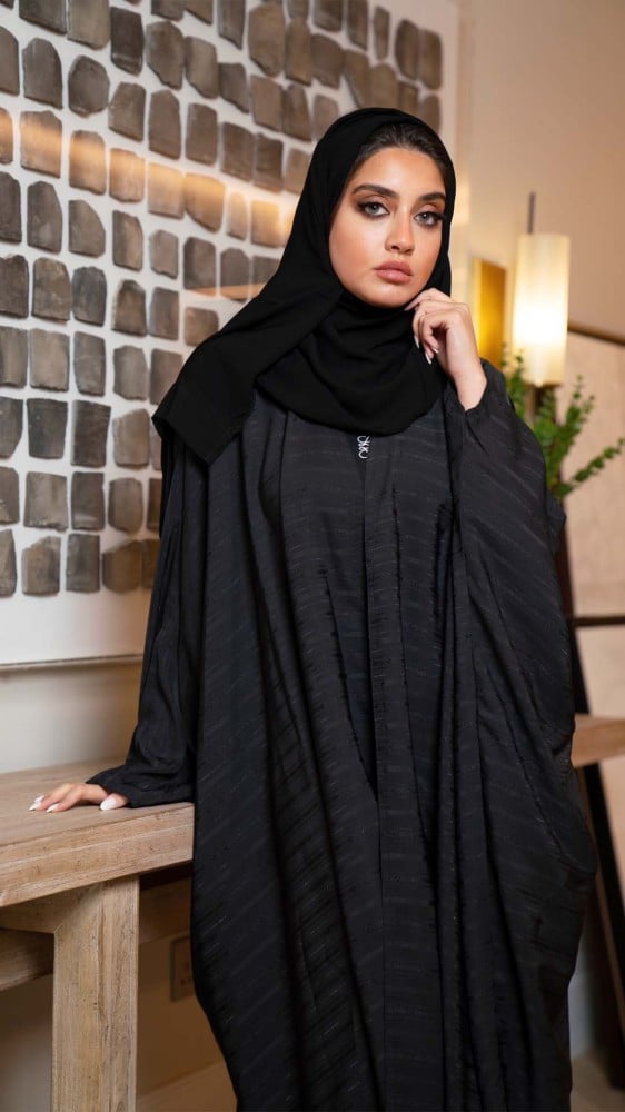 - الموديل: عباية بشت مقلمة من نفس الخامة ذات قصة واسعة