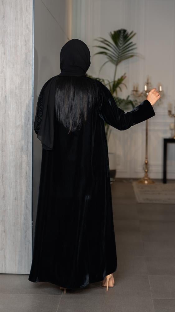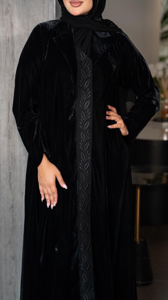 عباية بليزر مخمل مع تطريز من الامام
