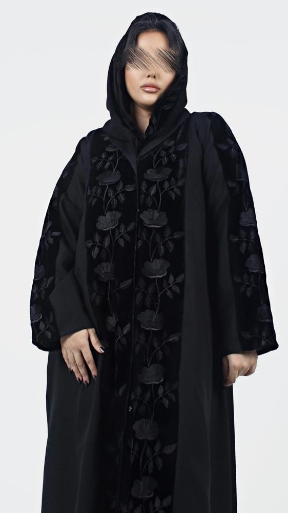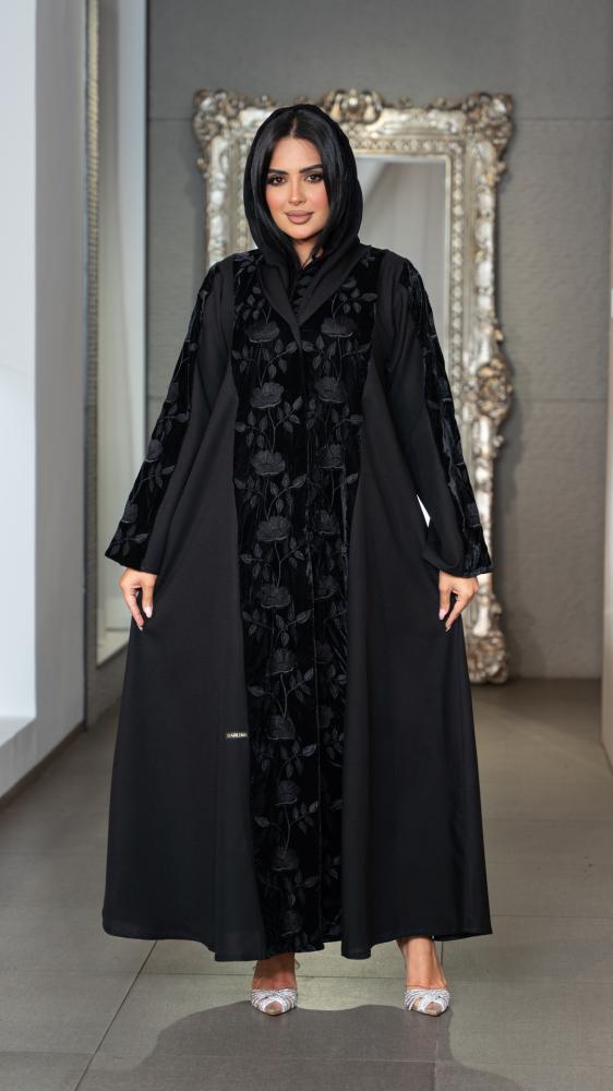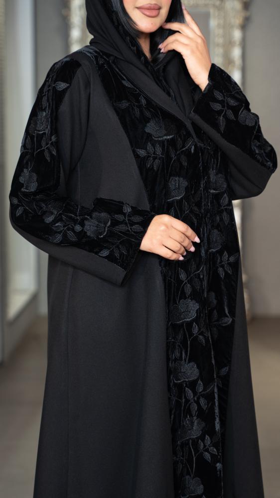 عباية بمخمل و بتطريز ورد