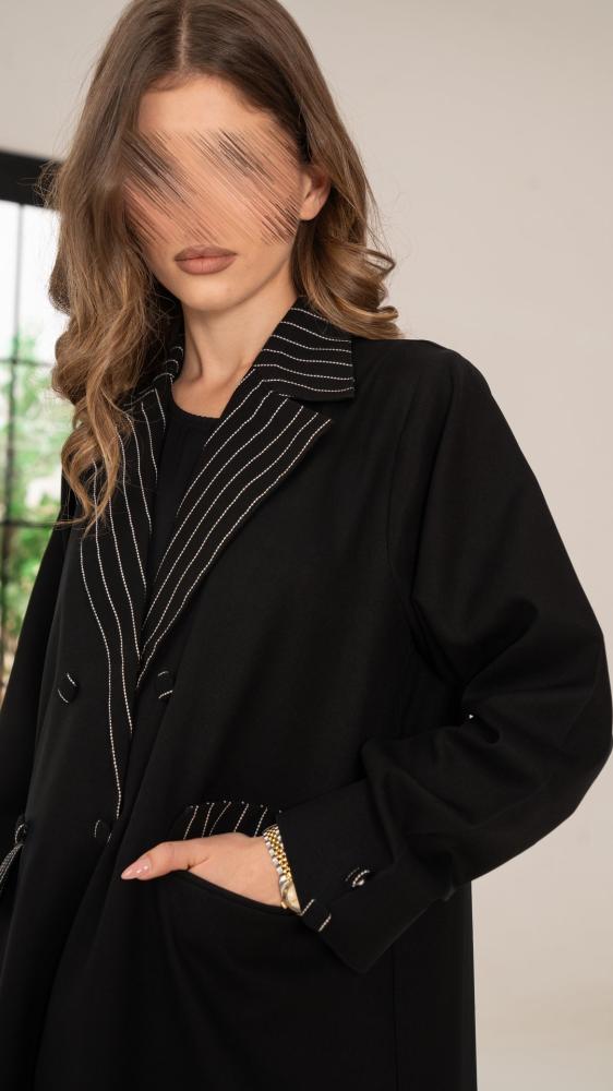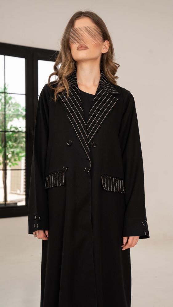 عباية بياقة مقلمة وجيوب