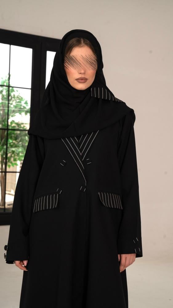 - الموديل: عبايه رسمية بتقليمات ناعمة