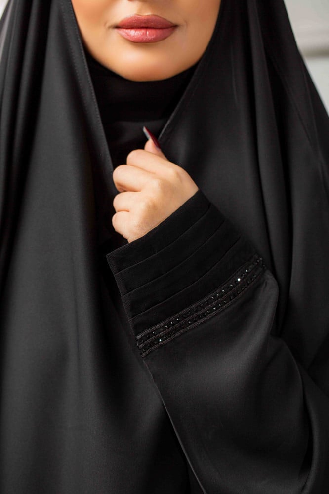 - الموديل: عباية رأس ب اكمام شيفون وكرستال فضفاضة سوداء