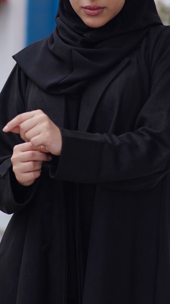 العباية مميزة بقصتها الكلوش العملية للدوام واللبس لساعات طويلة وكذا القماش المستخدم في نسجها من خامة الشامواه عالي الجودة يدفيك في الأجواء الباردة وشبة الباردة، صممناها مفتوحة ومزينة بأزرة قماشية من الأمام لتمنحك إطلالة رسمية أنيقة،