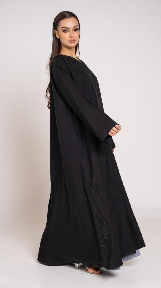 مصممة بكسرات من الخلف وتطريز من اسفل العباية , العباية كلوش وعرضها من الاسفل 60 انش