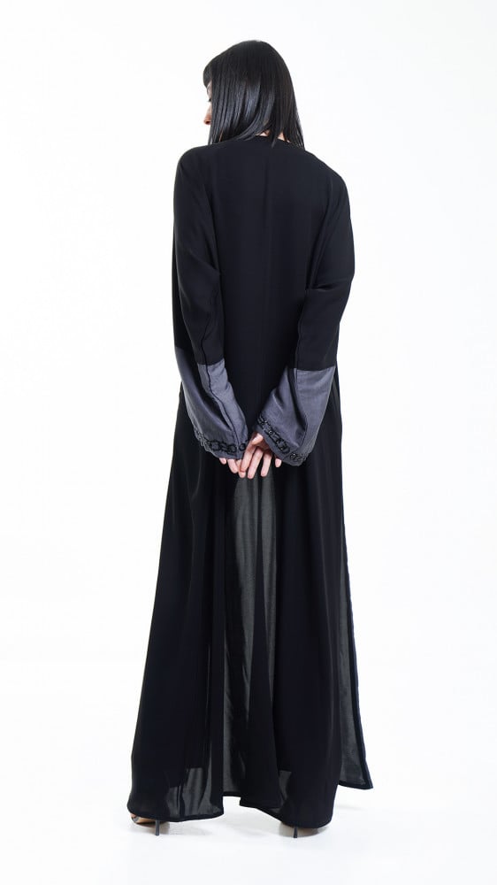 - الموديل: عباية سوداء باكمام رمادي مطرزة