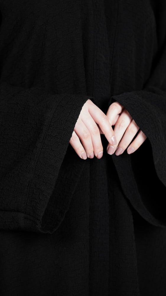 - الموديل: عباية سوداء سادة كلوش عملية مثالية للبس اليومي.