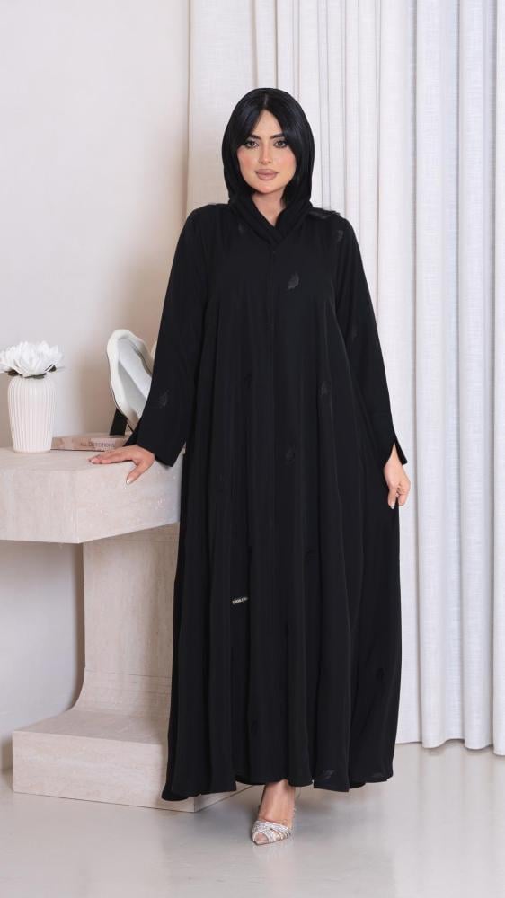 واخترنا يكون بتطريز اغصان ناعم على كامل العباية وبفتحة ناعمة على الاكمام