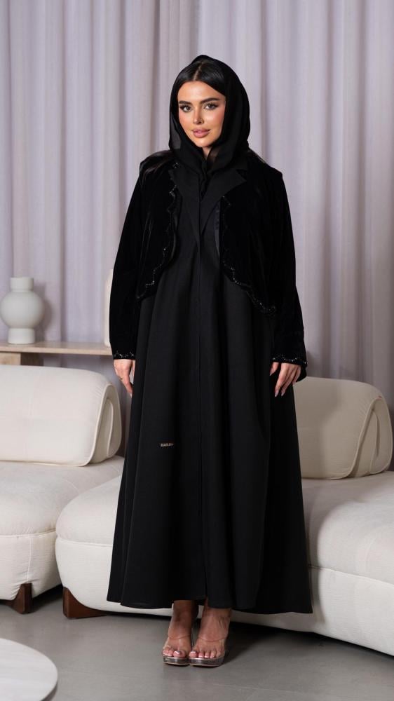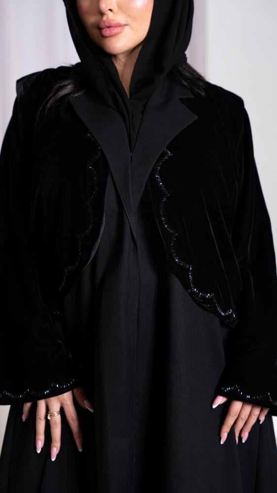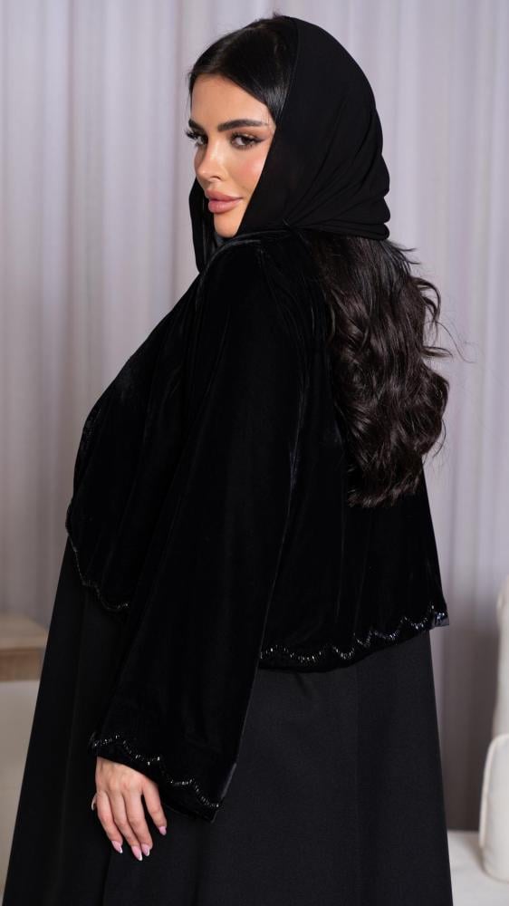 عباية سوداء مع جاكيت مخمل تنلبس بجاكيت او بدون