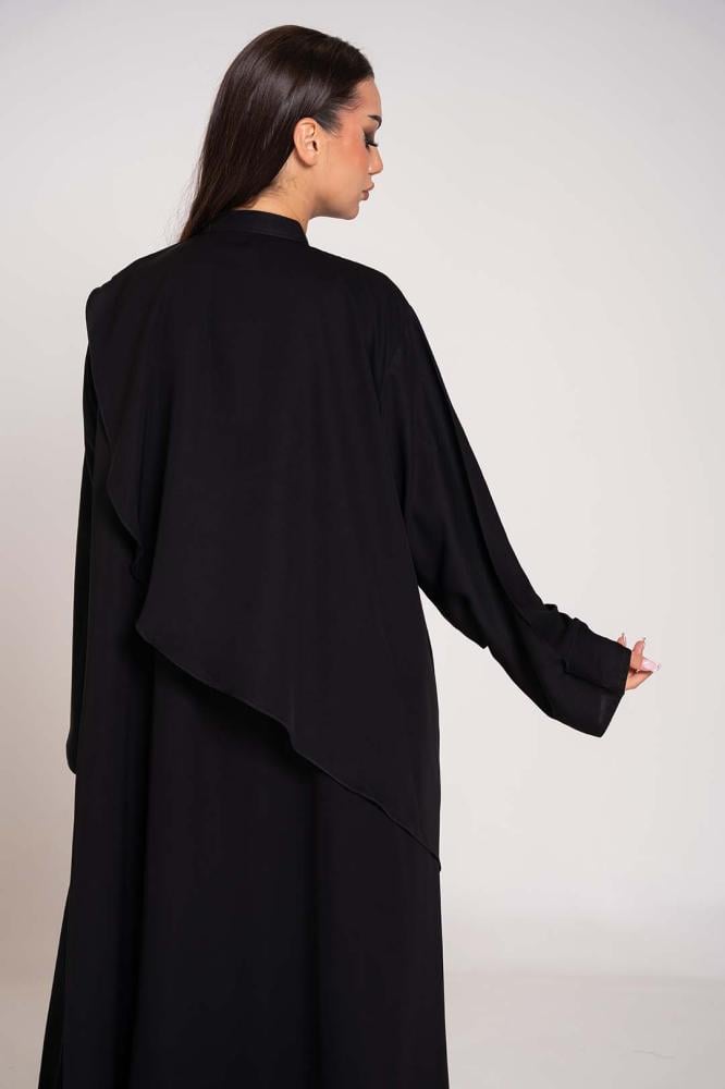 مصممة بقصة مائلة بقطعة اضافية , العباية كلوش عرضها من الاسفل 64 انش