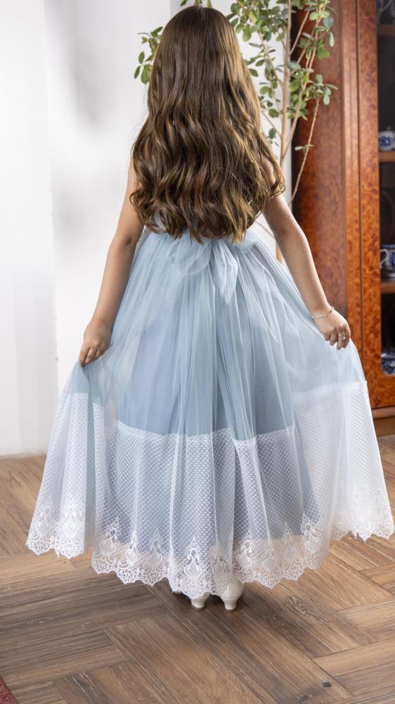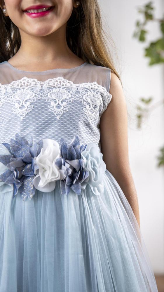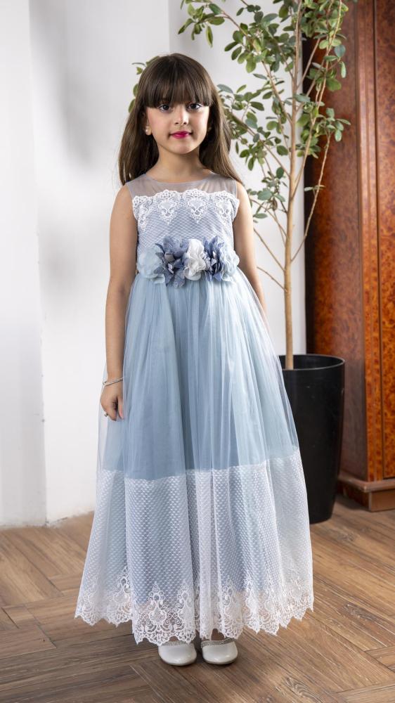 فستان بناتي سماوي بورد على الخصر