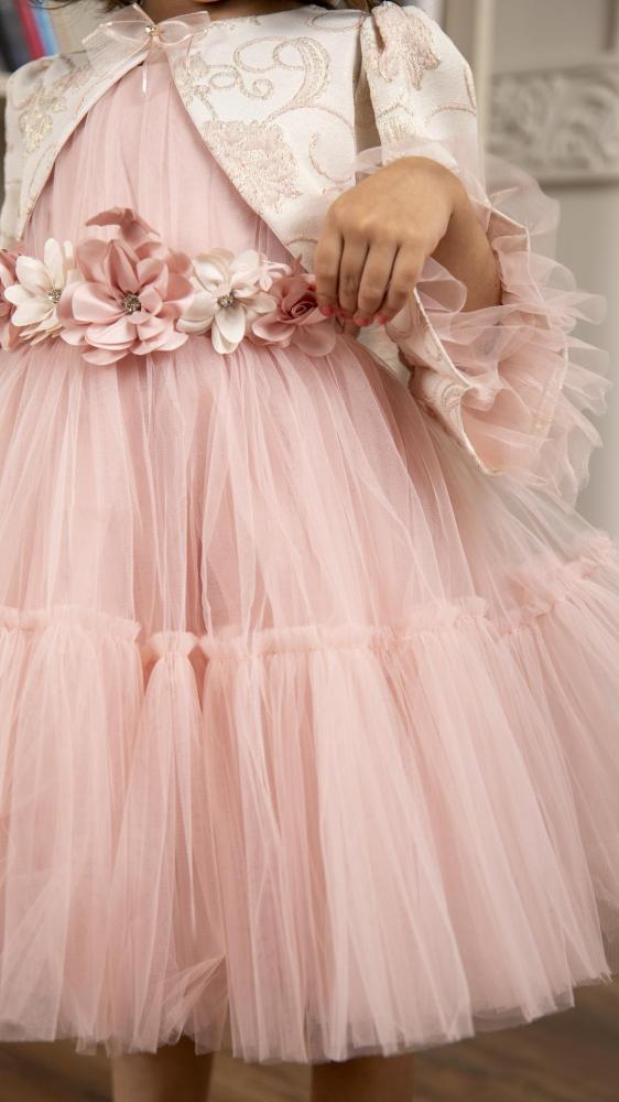 درجة الوردي الفاتحة بخامة التُل مع الورد تفاصيل مدروسة