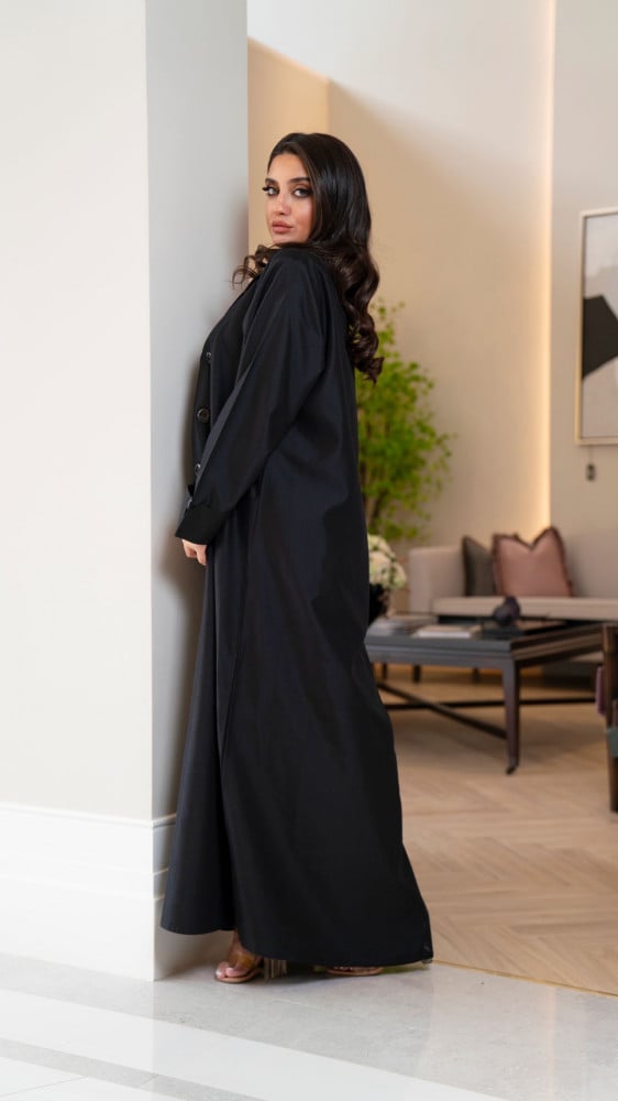 - الموديل: عباية بياقة رسمية وأزره عملية وأنيقة سوداء فخمه