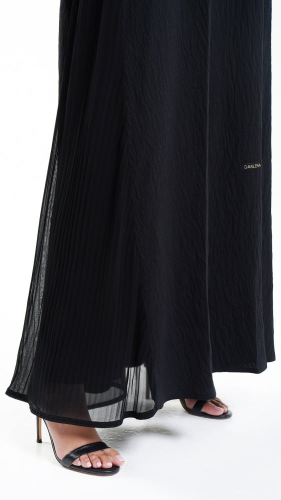 - الموديل: عباية كلوش باكمام ربط سوداء فخمة